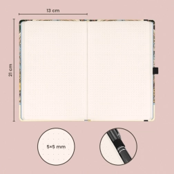 Zahvaljujoč trdim platnicam in elastični gumi bo vsebina ostala varna, medtem ko praktičen žep spravi vizitke ali nalepke. Zanka za svinčnik zagotovi, da boste imeli pisalo vedno pri roki.