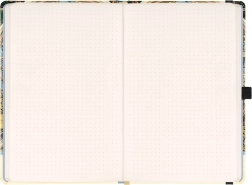 Stilski zvezek z ikoničnim secesijskim motivom Alfons Mucha – Zodiak združuje brezčasen dizajn in premišljene detajle. Pikčasta razporeditev strani je popolna za bullet journal, skiciranje, zapiske in načrtovanje nalog.