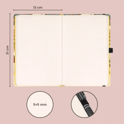 Uživajte v udobni uporabi zahvaljujoč premišljenim podrobnostim: elastična gumica beležnico varno zapre, notranji žep sprejme vizitke ali nalepke, zanka za svinčnik pa poskrbi, da imate pisala vedno pri roki.