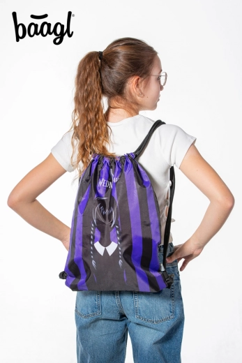 Lahka in praktična vrečka za na hrbet z ikoničnim motivom Wednesday odlično dopolni vsak prostočasni outfit. Zaradi odpornega, enostavnega za vzdrževanje materiala je primerna za vsakodnevno uporabo – v šolo, telovadnico ali na izlete.