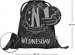 Praktična in vzdržljiva vrečka BAAGL s priljubljenim motivom Wednesday bo zanesljiv spremljevalec v šoli, na krožkih in v prostem času. Tkani nahrbtnik je lahek, a čvrst, enostaven za vzdrževanje in zaradi univerzalnega dizajna odlično pristaja otrokom in najstnikom.