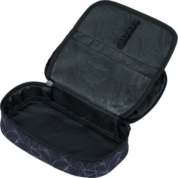 Zaradi pametne notranje razporeditve boste imeli svinčnike, peresa, radirko in majhne dodatke vedno pregledno urejene. Stilski detajli in temno črna izvedba z motivom Nevermore odlično dopolnijo šolsko opremo.