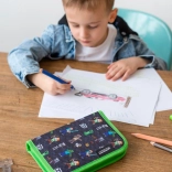 Set vključuje tudi klasično enonadstropno peresnico z dvema preklopoma, ki se zapira s kakovostno zadrgo. Idealna je za pregledno shranjevanje šolskih potrebščin zaradi svoje praktične velikosti.