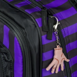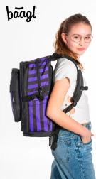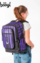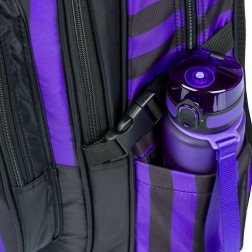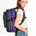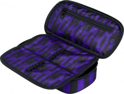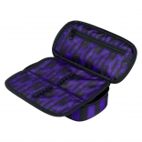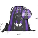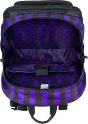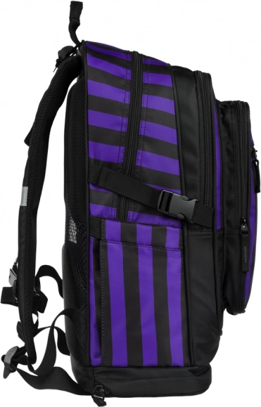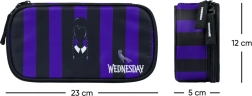 Set Cubic Wednesday vključuje stajliš nahrbtnik, praktično peresnico in vrečko za obutev, vse v sodobnem dizajnu s črnimi in vijoličnimi črtami. Nahrbtnik je zasnovan tako, da izpolnjuje ergonomske potrebe, medtem ko peresnica in vrečka poskrbita za organizacijo šolskih pripomočkov in prostega časa.