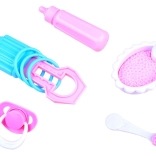 Set vključuje praktične dodatke: skledico s kašico, žličko, dudo, stekleničko in ropotuljico. Otroci lahko svojega dojenčka hranijo, tolažijo in uspavajo.