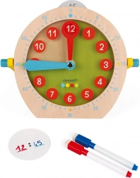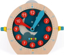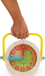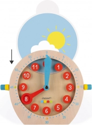 Lesena učna ura JANOD pomaga otrokom hitro in z veseljem razumeti, koliko je ura. Velika številčnica z jasno berljivimi številkami in barvnimi kazalci vodi otroke korak za korakom do razumevanja časa, naj vadijo cele ure, pol ure ali minute.