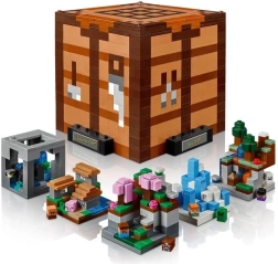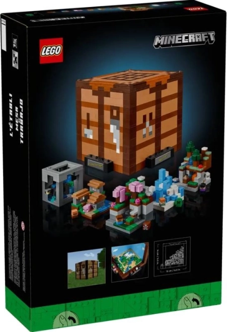 Model temelji na legendarnem delovnem pultu iz igre Minecraft in prinaša bogat svet v kompaktno, razstavno kocko. V notranjosti je pet ločljivih minimodulov, ki skupaj predstavljajo 12 raznolikih biomov – od tajge in bujne jame do ledenih konic in teme. Z 8 mikrofigurami (Steve, Alex, okostnjak, čarovnica, Creeper, vaščan, krava in prašič) zlahka ustvarite ikonične prizore.