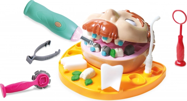 Ta zabavni kreativni komplet otrokom prinaša realističen občutek zobne ordinacije. Zahvaljujoč šestimi barvnimi modelirnimi masami in podrobnim orodjem lahko preizkusijo delo zobozdravnika, oblikujejo različne vrste zob, popravljajo kariese in pripravljajo zobni aparat. Vse je zasnovano tako, da spodbuja fino motoriko, ustvarjalnost in učenje skozi igro.