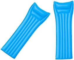 Ta plažni ležalnik je idealen za poležavanje ob bazenu ali na jezeru. Zahvaljujoč vgrajenemu vzglavniku nudi prijetno oporo za glavo, medtem ko robusten PVC material zagotavlja dolgo življenjsko dobo in stabilnost na vodi. Klasična oblika in univerzalna modra barva se podata k vsaki poletni opremi.