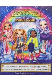 Punčka RAINBOW HIGH Sparkle & Shine Clementine prinaša izrazit oranžen videz, jeans jaknico, krilo s karo vzorcem in platform čevlje z napisom RAINBOW. Priloženi so stojalo, glavnik in tematski dodatki na motiv kave, ki širijo možnosti igre in zgodb.