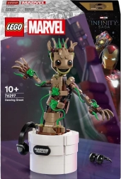 LEGO Marvel Plešoči GROOT (76297) je izviren komplet, ki združuje ustvarjalno sestavljanje z interaktivno plesno funkcijo. Zavrtite ročaj na zadnji strani lončka in opazujte, kako se GROOT zavrti v ples. Zahvaljujoč artikulirani glavi in rokam lahko figurico preprosto nastavite v različne poze in ustvarite zabavne prizore iz univerzuma MARVEL.