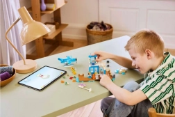 3D-navodila omogočajo približevanje in vrtenje modela. Otroci lahko prilagodijo tudi zastavo letališča s pomočjo dodatnih delčkov.