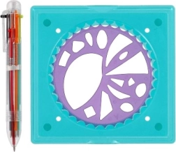 Štiri krožne šablone z desetinami oblik omogočajo ustvarjanje neskončnih kombinacij spiralnih vzorcev in mandal – od preprostih do kompleksnih.