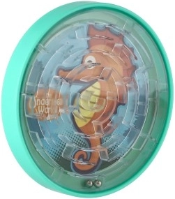 Okrogli kroglasti labirint z ljubkimi ilustracijami morskih bitij ponuja hitro porcijo zabave kadarkoli in kjerkoli. Dovolj je nežno nagibanje, da vodite kroglico od roba do sredine in nazaj. Igra odlično razvija fino motoriko, usklajenost oko–roka in strateško razmišljanje.