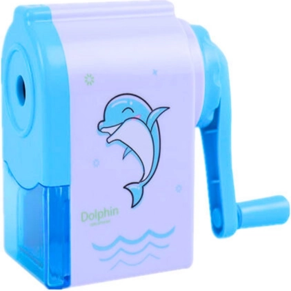 Ročni šilček z motivom delfina v svetlo modri barvi je praktičen pripomoček za otroke. Omogoča hitro in enostavno šiljenje svinčnikov in barvic brez večjega napora.