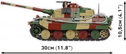 Odkrijte legendo oklepne tehnike z realističnim kompletom COBI iz serije Historical Collection. Model Königstiger izstopa z zvesto obliko, avtentično kamuflažo in natančno dodelanimi detajli. Po sestavi meri približno 30 × 11,5 × 10,5 cm, zato je odličen tako za igro kot za vitrino.