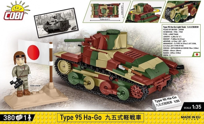 Komplet prikazuje slavni lahki tank TYPE 95 HA-GO, hrbtenico oklepnih enot cesarske japonske vojske v 30. in 40. letih. Tank se je proslavil v bojih na Filipinih, v Burmi in na Guadalcanalu. Model v merilu 1:35 zvesto zajema podrobnosti ter nudi odlično izkušnjo sestavljanja in razstavljanja na polici.