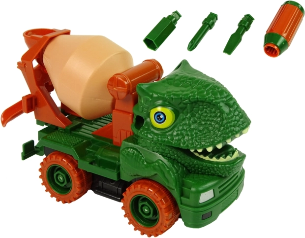 Zabaven otroški betonski mešalnik v dinozavrskem dizajnu za male graditelje. Avto je mogoče s priloženim izvijačem enostavno razstaviti in ponovno sestaviti, kar razvija fino motoriko, logično razmišljanje in kreativnost. Zahvaljujoč vztrajniku ga le potegnite nazaj in spustite. Vrtljiv boben in realistična dinozavrska glava z detajli zagotavljata domišljijsko igro na gradbišču ali v prazgodovinskem parku.