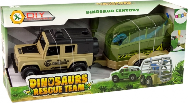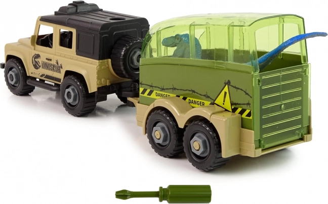 Prikolica je vgrajena, zato je mali raziskovalec lahko prepričan, da dinozaver ne bo pobegnil in se ne bo poškodoval. Kadarkoli jo je mogoče odklopiti in se igrati s samim terenskim vozilom.