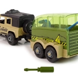 V terenskem vozilu lahko zlahka prepeljete velikega plazilca in ga rešite iz težav. Vozilo je opremljeno z vijaki, ki pritrdijo posamezne dele vozila. Del kompleta je izvijač, s katerim lahko avto privijete in odvijete. Z vijakanjem vijakov malček vadi roke, s čimer se pripravlja na prihodnje učenje pisanja in razvija funkcionalnost rok.