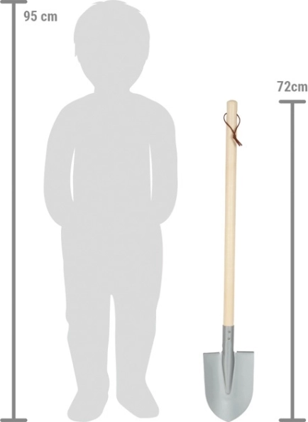 Koničasta siva lopata je zasnovana z mislijo na potrebe otrok. Zaradi svoje teže in oblike omogoča udobno uporabo ter spodbuja razvoj motorike in odnos do narave. Lopata ima lesen ročaj, ki otrokom dobro leži v roki, in kovinsko glavo, ki je trpežna in primerna za delo na gredicah in v peskovniku.
