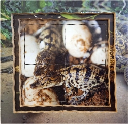 Z avtentičnimi fotografijami posamezne razvojne faze sestavljanka ponuja realističen pogled na življenje krokodila.