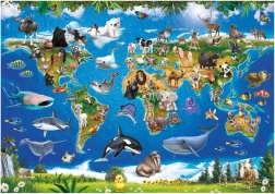 Vesela otroška sestavljanka z zemljevidom sveta in živalicami je odlična pomoč pri učenju geografije in spoznavanju favne posameznih celin. Zahvaljujoč 100 XL kosom jo udobno sestavljajo tudi majhne roke, barvit motiv pa otroke takoj pritegne.