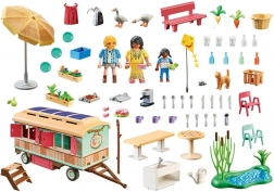 Ta set je idealno darilo za vsako priložnost, ki spodbuja otroke k ustvarjalnosti in jim pomaga razvijati dragocene veščine. Vsebuje tri figurice Playmobil, dve gosi, voz s sediščem z dvema stoloma in mizo, cvetlična korita in še številne druge dodatke. Notranjost voza lahko poljubno okrasite s priloženimi nalepkami.