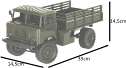 Odkrijte vojaške avanture z daljinsko vodenim vojaškim tovornjakom, idealnim darilom za ljubitelje vojaške tehnike. V merilu 1:16 se ta avto ponaša z natančno izdelavo in funkcionalnimi lučmi, ki popestrijo vsako igro. Štirikolesni pogon zagotavlja, da vozilo obvladuje vse terene - od peska, trave do zahtevnega terena brez težav.