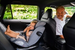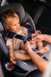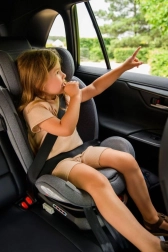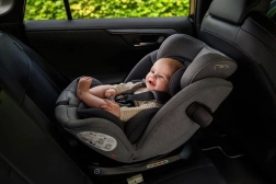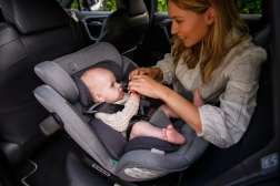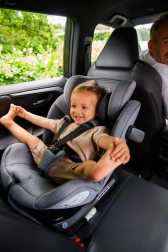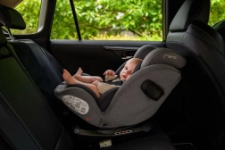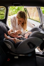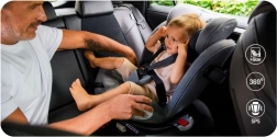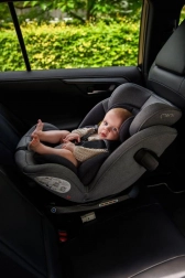 MoMi EMI omogoča rotacijo za 360°, kar omogoča enostavno namestitev v smeri in proti smeri vožnje. Vključuje stranske ojačitve SIPS, 11 položajev naslonjala za glavo in 6 stopenj naklona za maksimalno udobje in varnost. Dodatno sigurnost zagotavlja sistem pritrditve TOP TETHER.