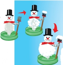 - Uporabiti čarobno tekočino - nalijte jo v posodico in opazujte čarobni proces oblikovanja snežaka.