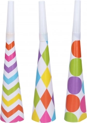 Dodajte svoji zabavi več zabave s temi zabavnimi trobenticami MIX, ki merijo 20 cm in prihajajo v pakiranju po 6 kosov.