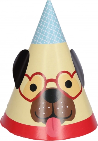 Popestrite rojstnodnevno mizo z igrivimi klobučki s pasjim motivom. Zahvaljujoč praktični višini 15 cm so udobni za nošenje in se odlično podajo k drugim zabavnim dekoracijam. Paket 6 kosov je kot nalašč za manjše in večje zabave.
