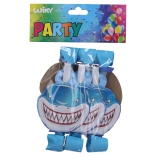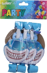 Preprosta uporaba in efektna zasnova delata te trobentice priljubljen party dodatek. Kombinirajte jih z drugimi okraski v modrih tonih in z motivom morskega psa za enoten videz zabave.