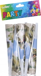 Ustvarite zabavno vzdušje na vsaki zabavi s party trobenticami z motivom dinozavrov. Zaradi dolžine 20 cm so enostavne za uporabo, lahke in varne za otroke in odrasle. Odlično dopolnijo okrasitev ter poskrbijo za veselje in zvočne učinke.