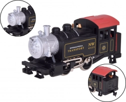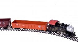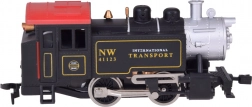 Ta električna železnica v merilu H0 (1:87) zvesto posnema pravo parno lokomotivo, vključno s podrobnim podvozjem in realističnimi napisi. Stabilnost v ovinkih zagotavljata utežena lokomotiva in kakovosten tek. Dva tovorna vagona z vrtljivimi osmi gladko prehajata skozi zavoje in omogočata prevoz manjših tovorov.