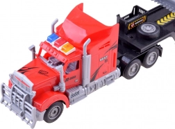 Nizkoposteljna prikolica varno prepelje traktor s prikolico. Podrobna izdelava in robustna plastika zagotavljata dolgo življenjsko dobo pri igri.