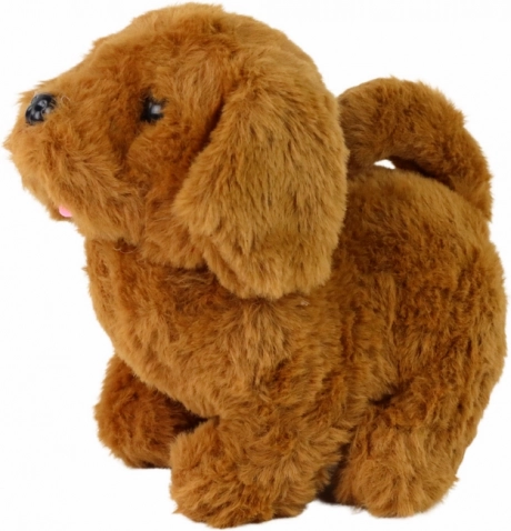 Interaktivni rjavi kužek, ki hodi, laja in maha z repom. Mehak otip, trpežna izdelava, CE/EN71. Odlično darilo za otroke od 3. leta.