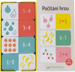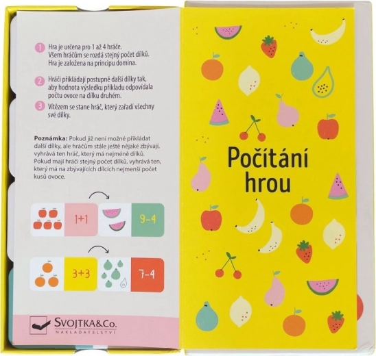 Ta pametna in zabavna igra založbe Svojtka & Co. pri otrocih razvija ključne sposobnosti: od osnov aritmetike do logike in strateškega razmišljanja. Princip domina otroke motivira k iskanju pravilnih parov – povezujejo nalogo z ustrezno količino sadja.