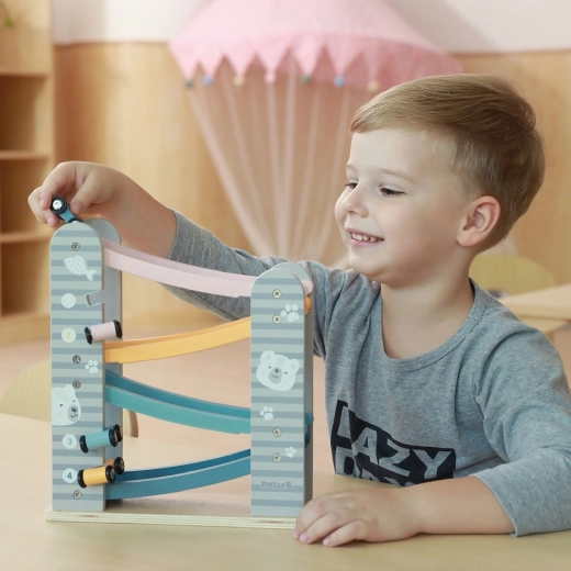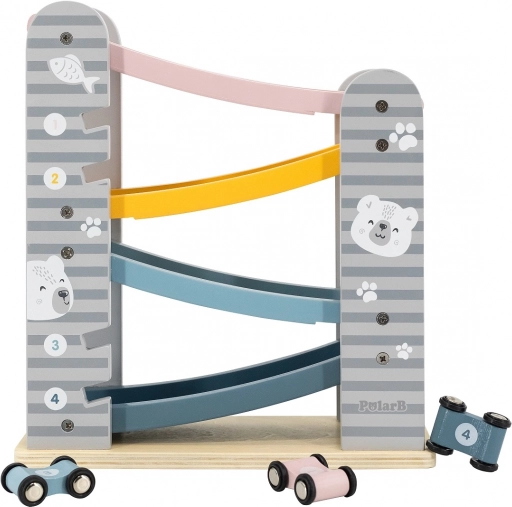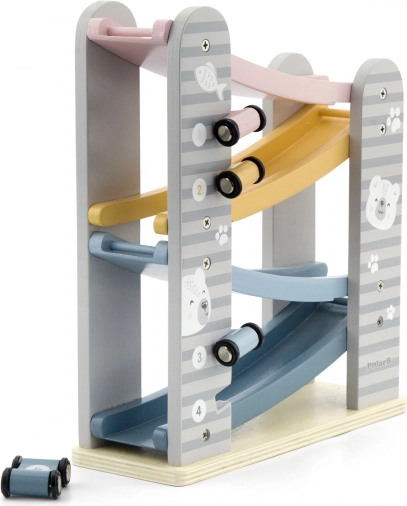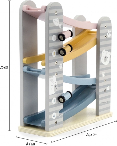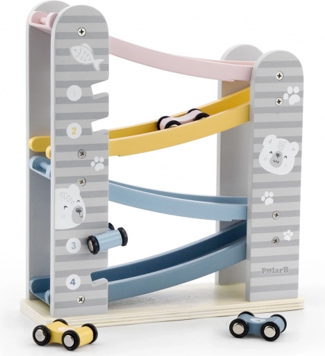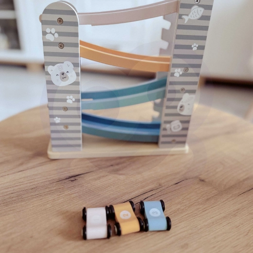 Dirkalna steza je odlična igrača za vsakega malega ljubitelja dirk. Edinstvena zasnova in vzdržljivost jo naredita za idealen dodatek vsake otroške sobe. Za varnost skrbijo zaobljeni robovi, pastelne barve pa pritegnejo vsakega otroka.