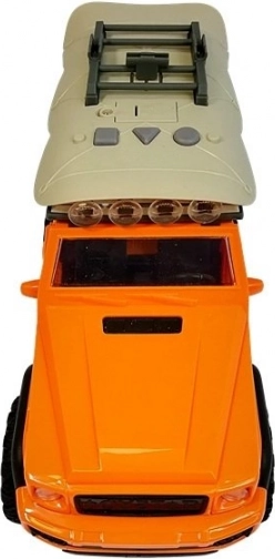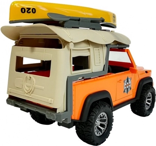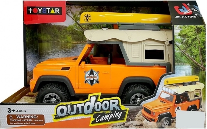 Odpravite se na namišljene izlete v naravo s kampingovskim avtom JEEP v oranžni barvi in s stilskim rumeno-sivim kajakom. Zahvaljujoč svetlobi in zvoku je vožnja realistična, odpirajoča se vrata in zadnji prtljažnik vabita k raziskovanju notranjosti, gumijaste pnevmatike pa se spopadejo z različnimi površinami v otroški sobi.