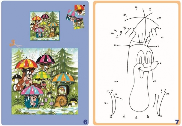 Vsebina je zasnovana tako, da zabava in hkrati razvija: od spoznavanja barv in likov, prvih črk in številk do enostavnega računanja. Ne manjkajo labirinti, uganke in otroški sudoku. Za vsak slučaj so na koncu navedene rešitve, da lahko starši preprosto preverijo pravilnost.