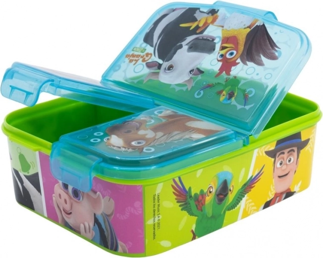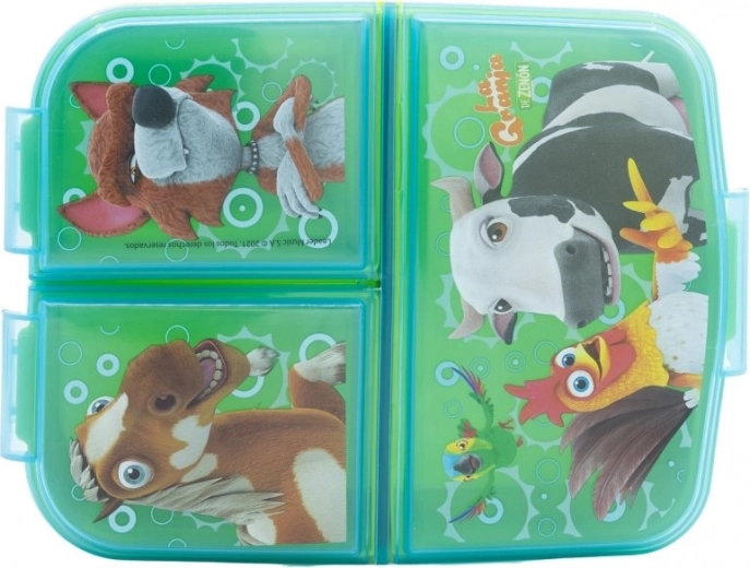 Praktična otroška večnamenska škatla za malico z motivom LA GRANJA DE ZENÓN ponuja tri ločene predelke, vzdržljiv material za vsakodnevno uporabo in izvedbo brez BPA z uradno licenco.