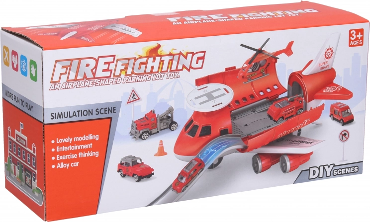Gasilna letalska postaja za otroke. Vključuje 4 vozila, helikopter, stezo in dodatno opremo.