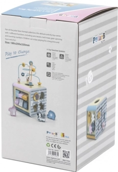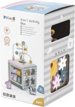 Lesena aktivna kocka 5v1 POLARB je premišljeno izobraževalno središče za otroke, ki združuje zabavo in učenje. Vsaka stran ponuja drugo dejavnost – od premikanja biserčkov do zobnikov – in tako podpira naravni razvoj spretnosti. Kakovosten les in varne barve zagotavljajo vzdržljivost in varno igro.