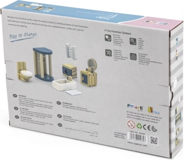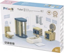Stilska kopalnica iz linije PolarB znamke Viga razširi vašo hišico za punčke z realistično opremo iz naravnega lesa z modrimi poudarki. Zahvaljujoč gladkim robovom in netoksičnim barvam je set primeren za otroke od 3 let ter odlično razvija domišljijo, komunikacijo in fino motoriko.