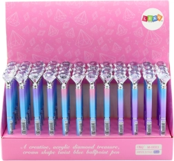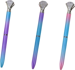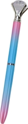 Eleganten kemični svinčnik z velikim bleščečim »diamantom« na koncu bo vašim zapiskom dodal pridih glamurja. Ima modro črnilo za gladko pisanje, konico 0,7 mm in barvno izvedbo v odtenkih modre, rožnate in vijolične. Odlična izbira za vsakodnevno uporabo ali kot stilski dodatek.