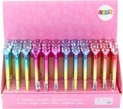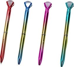 Eleganten kemični svinčnik z velikim bleščečim »diamantom« na koncu doda vašim zapiskom in korespondenci luksuzen videz. Gladko pisanje z modrim črnilom, univerzalna konica 0,7 mm in zlato ohišje z barvnimi poudarki (rožnata, modra, rdeča, zelena) ga naredijo za stilski dodatek za vsak dan in posebne priložnosti.