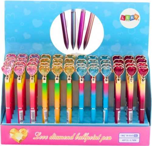 Dekorativno srce z diamantnim učinkom in barvni preliv ohišja pisalu dodata edinstven videz – popolno tudi kot drobno darilo.