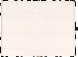 Eleganten črtast zvezek NOTIQUE z abstraktnim dizajnom je odličen spremljevalec za delo, šolo in na poti. Zahvaljujoč trdim platnicam prenese vsakodnevno uporabo, elastika varno drži vsebino skupaj, zanka za svinčnik pa poskrbi, da imate pisala vedno pri roki.